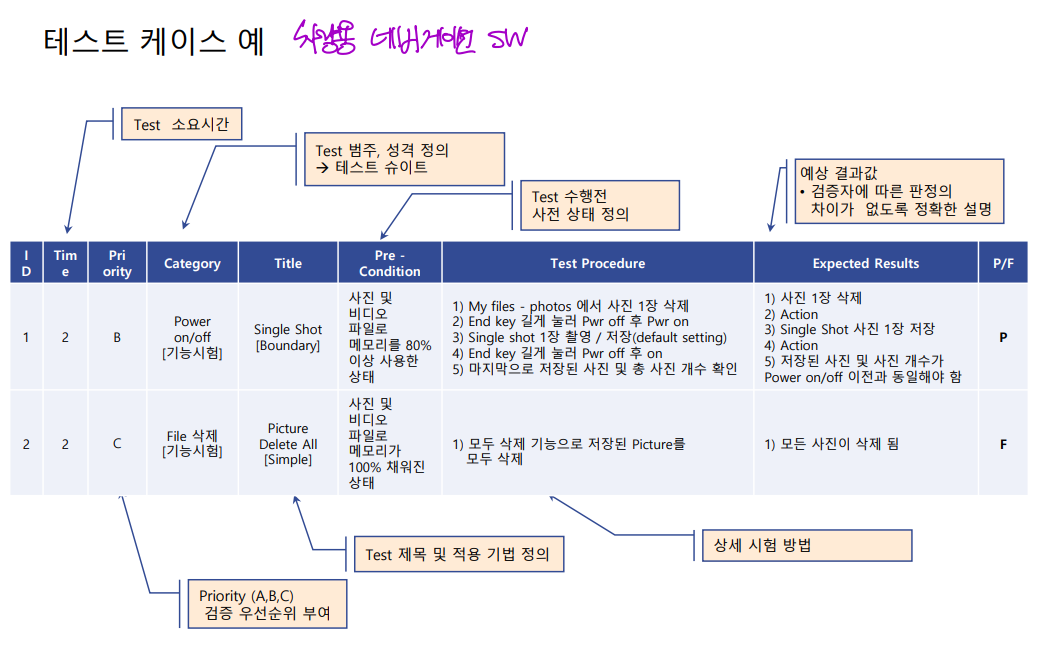 - Test identification (테스트 항목 정의) - 테스트 설계 단계