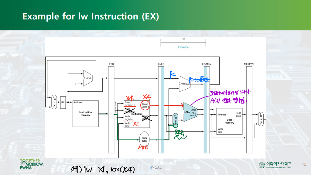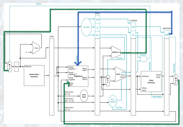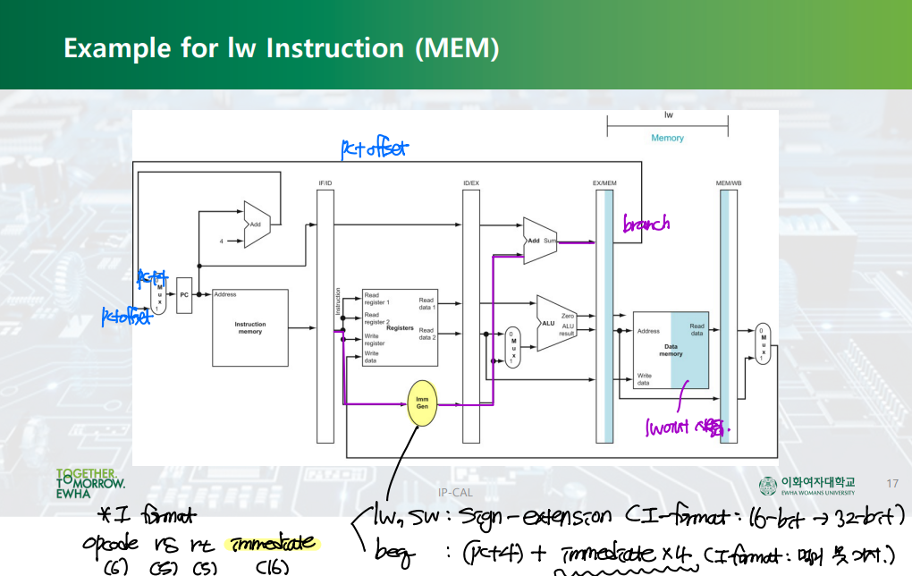 - MUX를 통해, sign-extension된 immediate 값이 ALU로 들어오도록 선택한다.