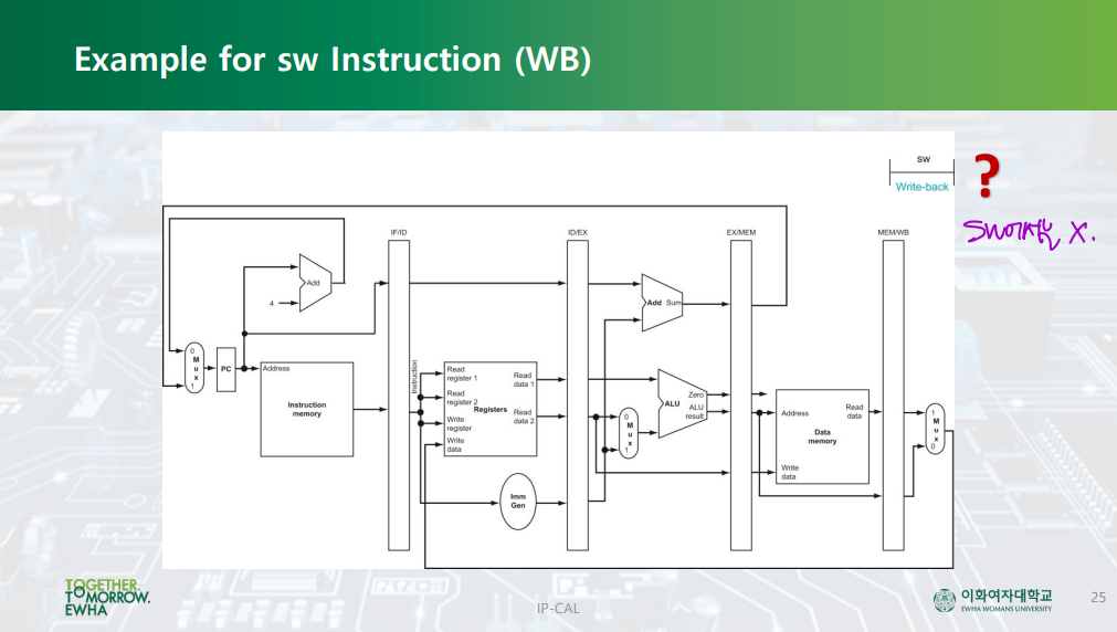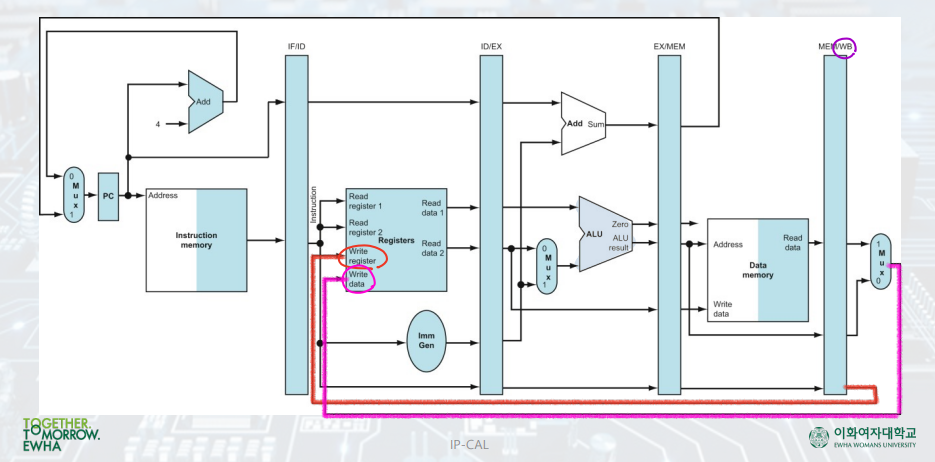 - MEM/WB에 저장된 Read data를 MUX에서 선택하여, Register file의 Write data에 write back한다.
