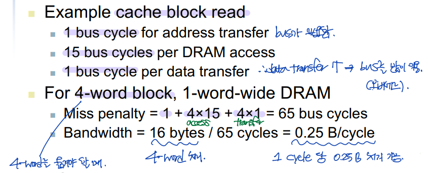 - 조건) 4-word block, 1-word-wide DRAM