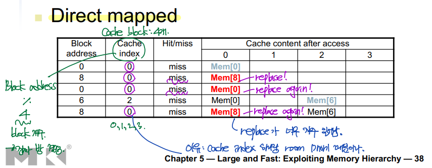 ▶ Direct mapped: no choice (그냥 다 대체되어야 함)