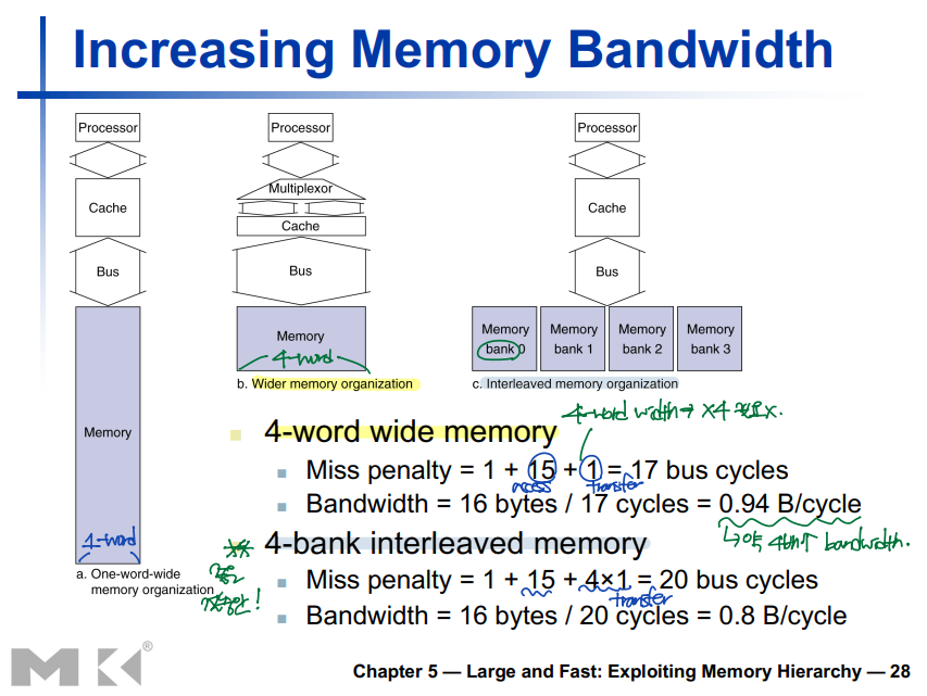 --> 한 번의 메모리 접근, 4번의 전송으로 4-word block을 처리할 수 있다. (좋은 절충안!)