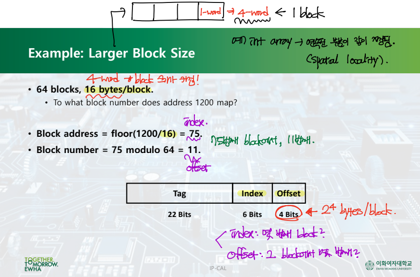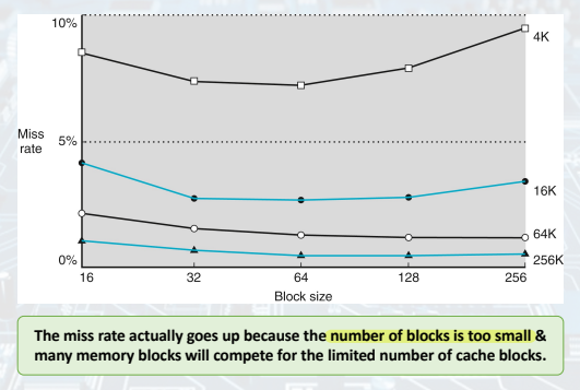- 단점: 하나의 block 크기가 크면, 전체 block 개수는 줄어들 수밖에 없다. = miss penalty