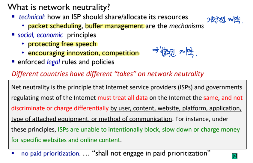 참고로, 이러한 scheduling disipline은 망 중립성(network neutrality)에 방해가 될 수 있다.