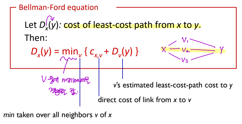 - Bellman-Ford equation: cost of least-cost path from x to y.