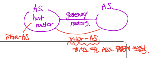 - Inter-AS routing: AS 간의 routing (예: BGP)