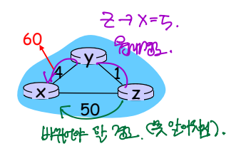 - {a, b, c} --> y까지의 link cost 변할 때 (mssage from neighbor)