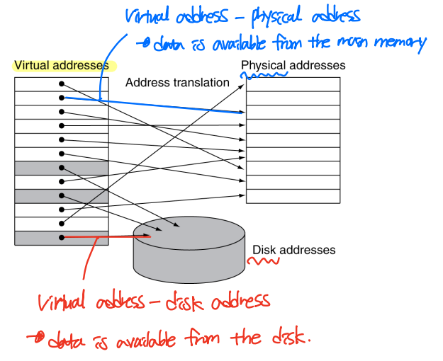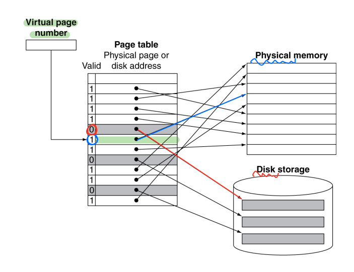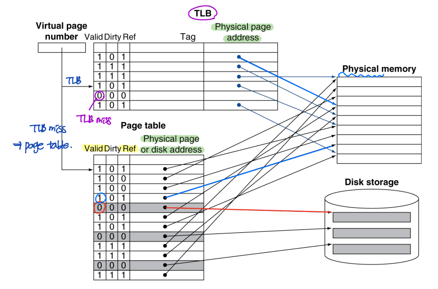--> TLB miss handler가 PTE를 main memory에서 TLB에 복사하고, 재시도한다. - Case 2) TLB miss가 발생해서 main memory에서 page table을 찾고 보니, 그 page에 대한 frame이 main memory에 없다. Disk에 가서 찾아와야 한다.
