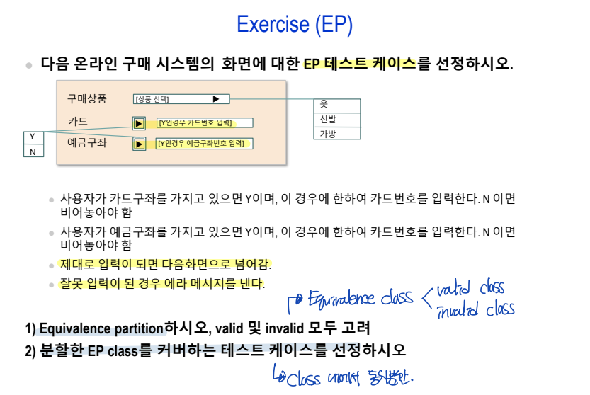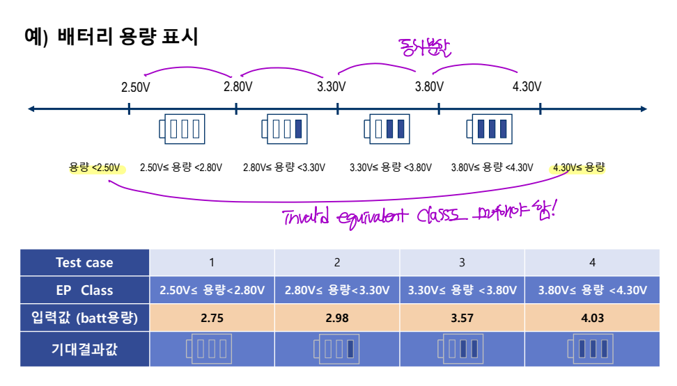 - Invalid equivalence class: 유효하지 않은 입력 데이터 (입력되지 말아야 할 값)
