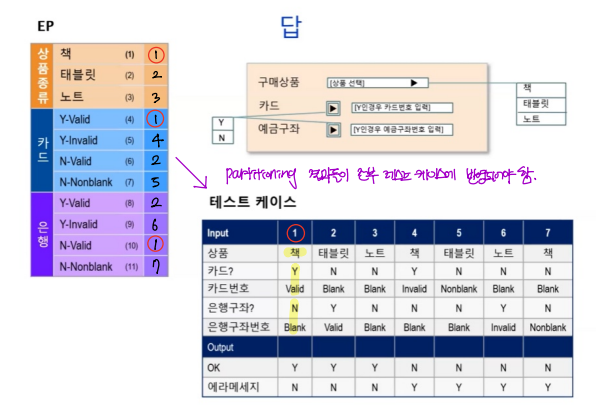 : 동치분할하여 뽑은 대표값들이 전부 테스트 케이스에 반영되어야 한다!