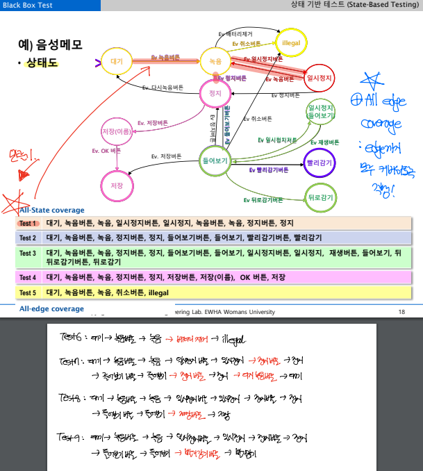 ▶ 결정 테이블(decision table) vs. 상태 기반 테스트(state-based testing)