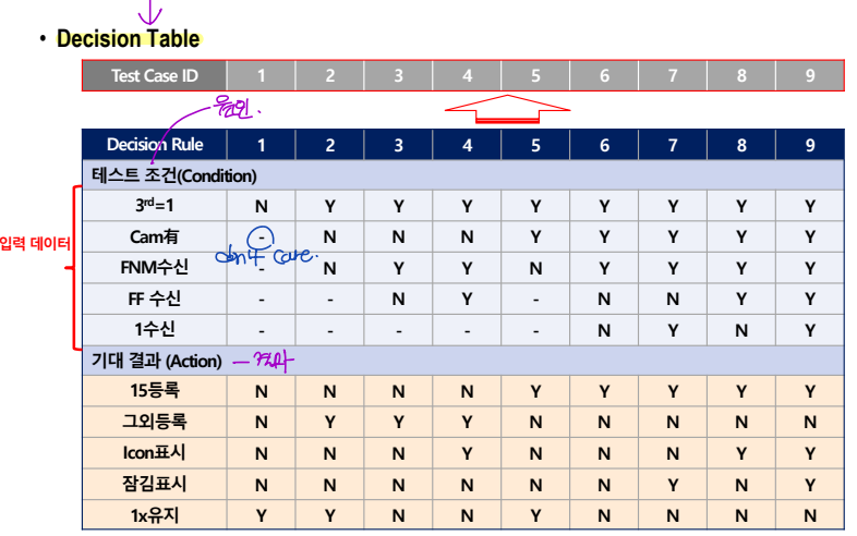 : 입력 조건이 많고 복잡한 경우, 단순화하여 결정 테이블을 만든다.