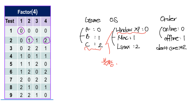 ▶ Orthogonal array에 의한 조합 테스트: