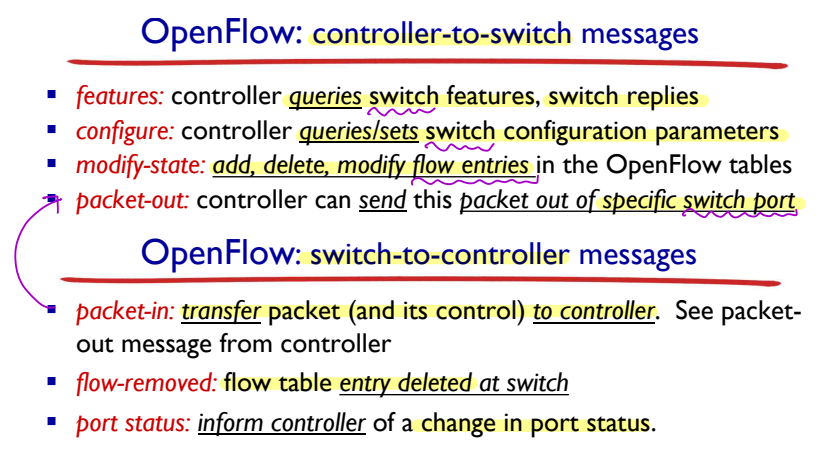 - OpenFlow 메시지에는 세 종류가 있다.