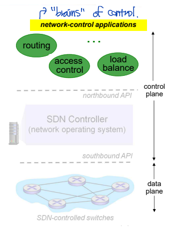 - SDN controller: network-wide 상태 유지 layer.