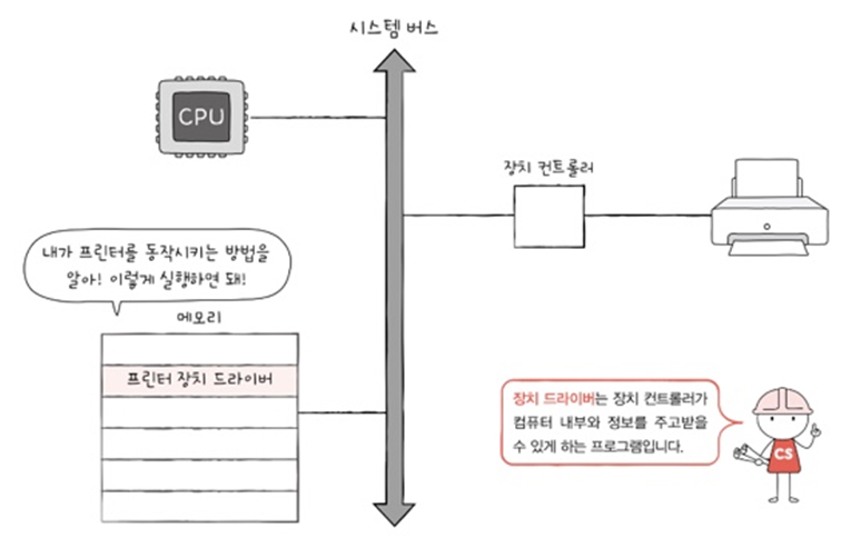 - Device driver: Device controller를 I/O device와 연결하기 위한 소프트웨어적인 통로