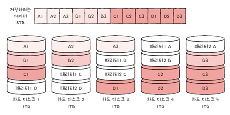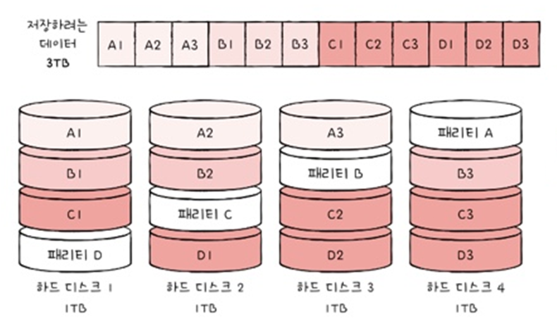 : 패리티 정보를 분산하여 저장하는 방식