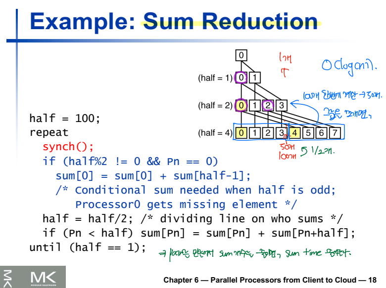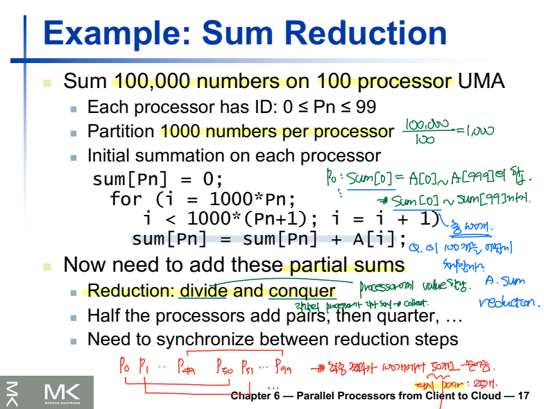 - 프로세서 별로 sum 수행 결과 100개의 sum이 생긴다.