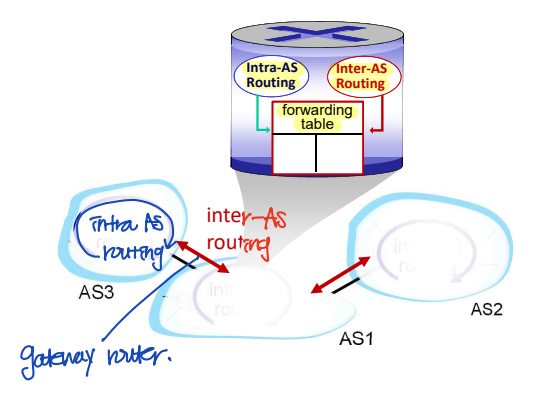 - Intra-AS routing: 하나의 AS 내에서의 routing (예: OSPF, RIP)