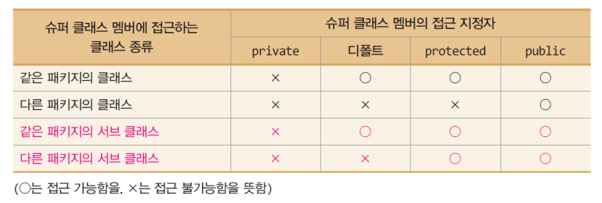 슈퍼 클래스의 디폴트 멤버에 대한 서브 클래스의 접근