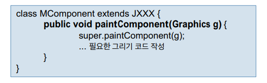 : 개발자가 JComponent를 상속받아 새로운 컴포넌트를 설계하든지 아니면 기존의 스윙 컴포넌트 모양에 변화를 주고자 할 때