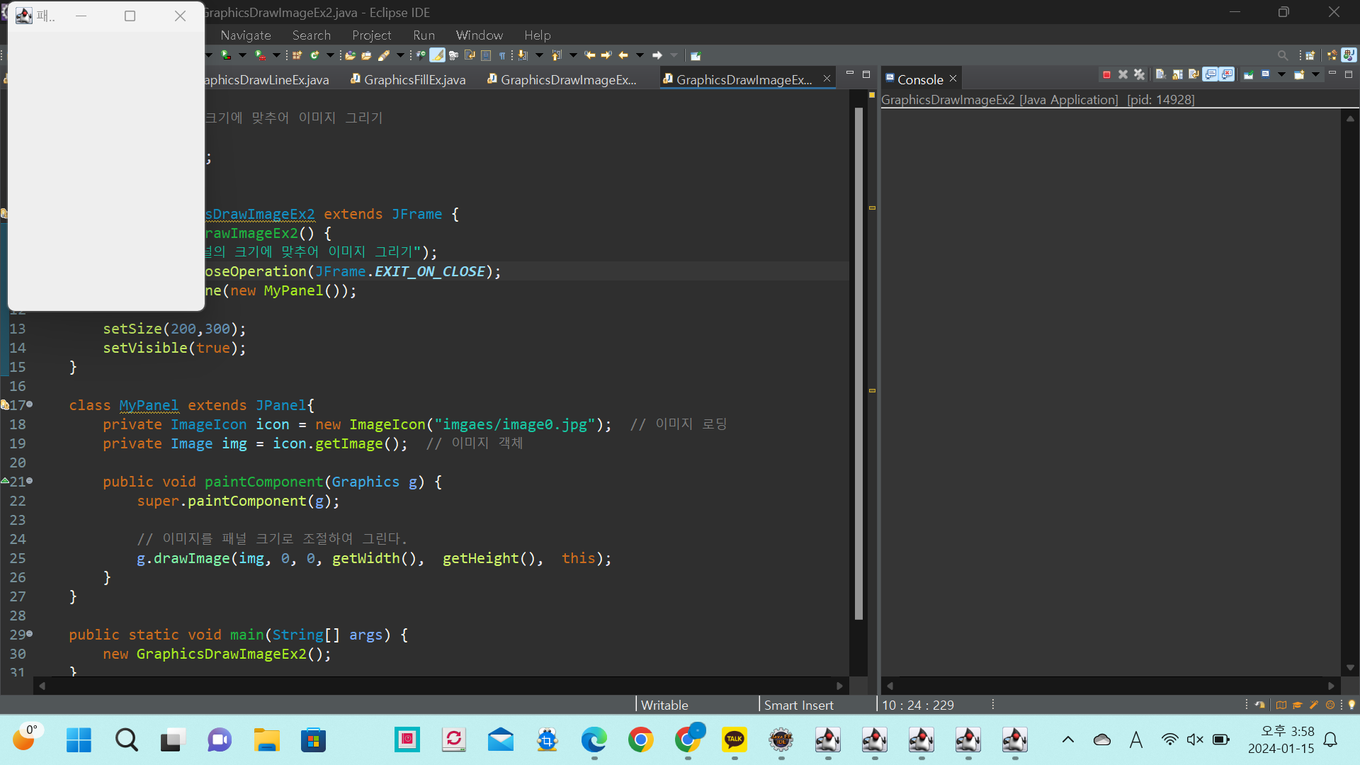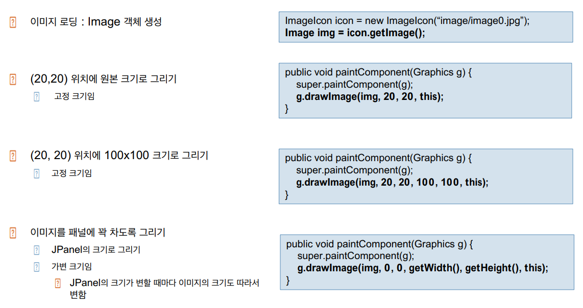 * 예제 11-6: JPanel 크기에 맞추어 이미지 그리기